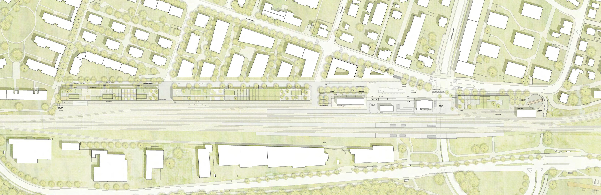 Der Bahnhof Wettingen ist ein stark frequentierter und wichtiger Verkehrsknotenpunkt. Heute weist das Bahnhofareal einen gewerblich-industriellen Charakter auf und bietet kaum Aufenthaltsqualitäten. Hier soll ein attraktives Wohn- und Arbeitsgebiet mit gemischter Nutzung und zunehmender Dichte zum Bahnhof entstehen. Gefragt sind Freiräume, die sowohl Nutzungen der Bahn zulassen, wie auch eine hohe Aufenthaltsqualität aufweisen.