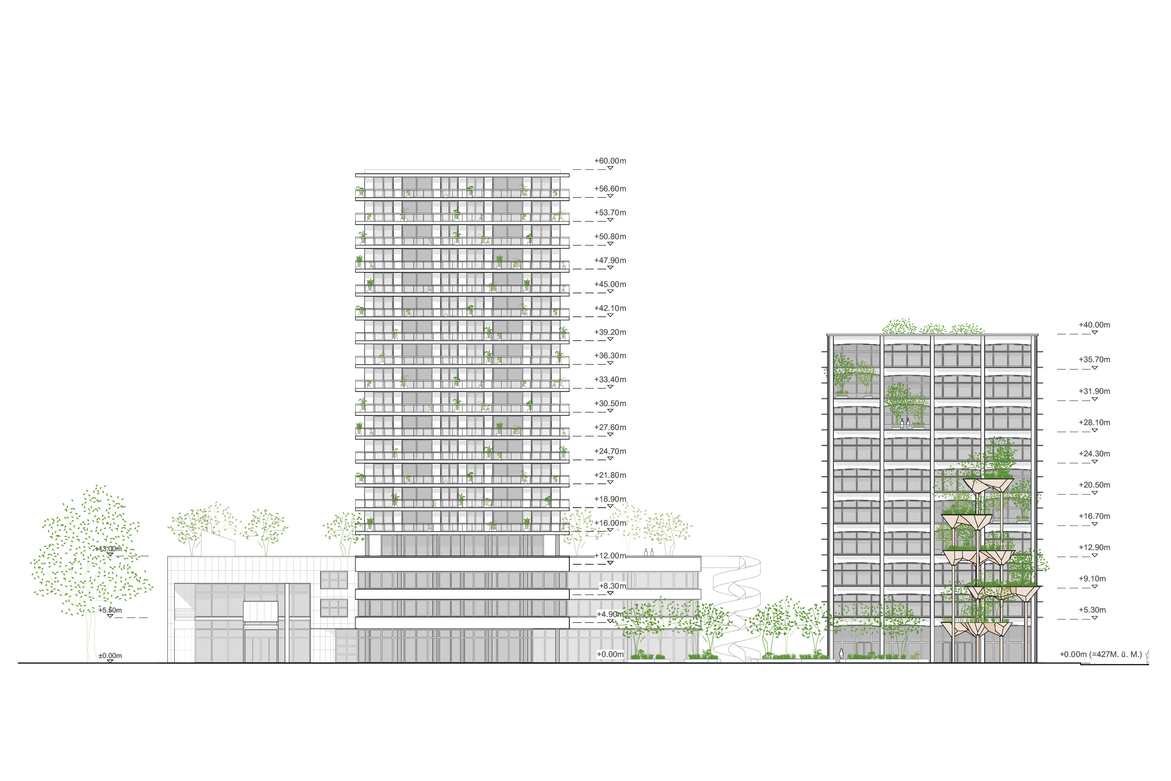 CreaTower, Zug Bauherrschaft: Urban Assets Zug AG Leistungsphasen: Wettbewerb 2022, 1. Rang Architekten: Gigon Guyer Architekten, Zürich