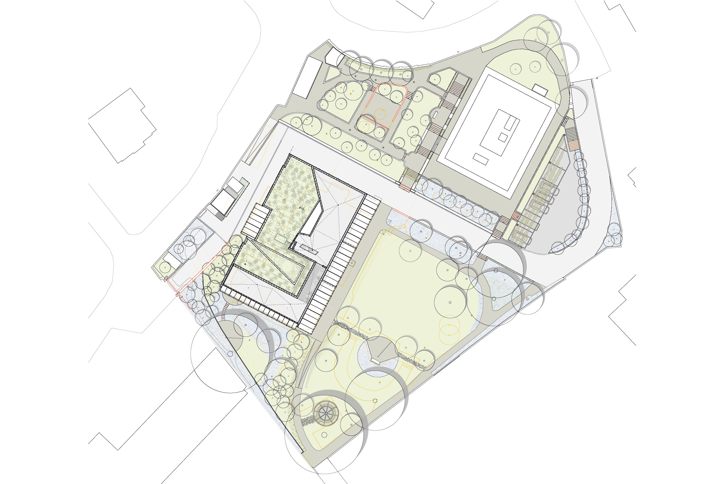 In einem alten Villengarten mit ursprünglichem Baumbestand wurde vor circa 10 Jahren die Kanzlei an der Stelle des ehemaligen Tennisplatzes gebaut. Durch den Neubau der Residenz konnte der Garten reorganisiert werden.